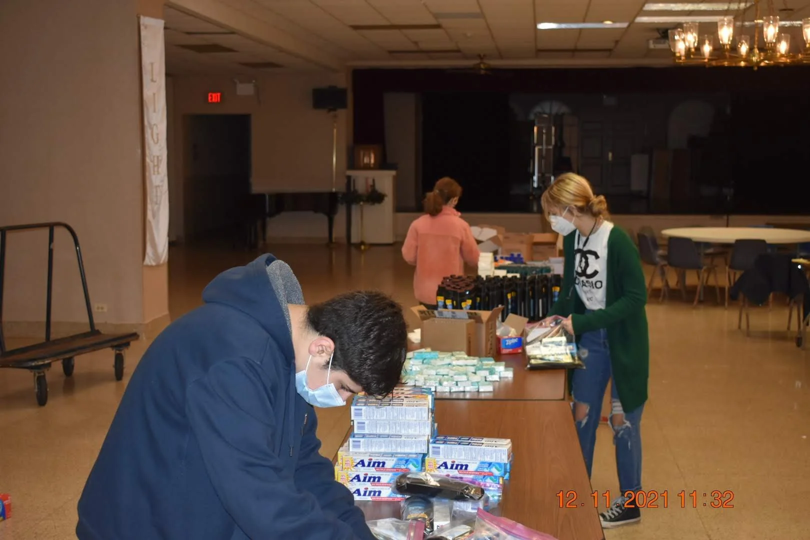 Each year St. Sabina sponsor ours troop with a substantial donation. With that donation we purchase personal hygiene items and pack them into ~200 kits.