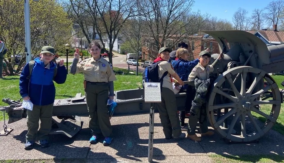 Scouts complete a “history hunt” by trying to find all of the historical sites hidden throughout the city.