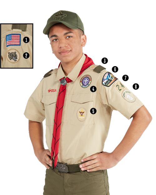 For most scout events a Class A uniform will be required. On the scout uniform new scouts will need: