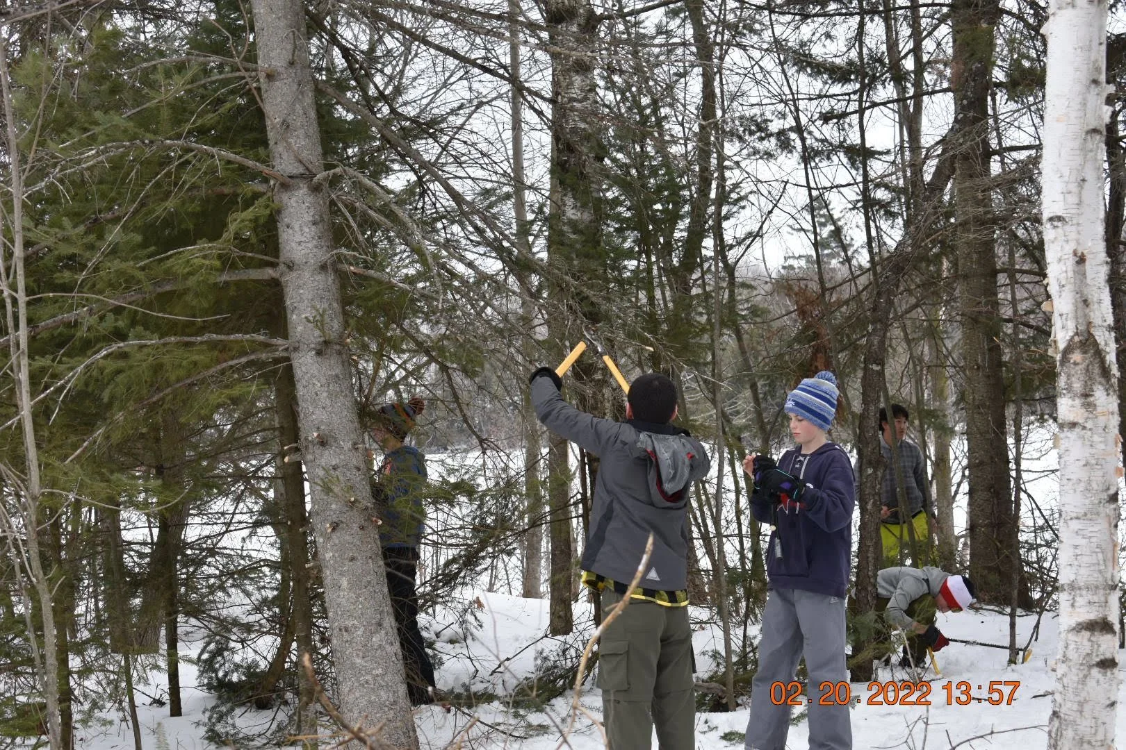 We can even find time to give back to the camp by trimming the evergreens.